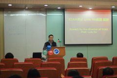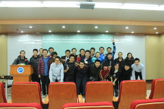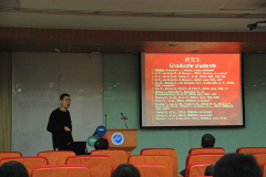 晚会开始,首先由天文系系主任刘富坤教授致辞,刘老师总结了过去一年里天文系师生在科研活动方面的重大进展和研究亮点,并对大家送上了新年的祝福。 接着科维理所所长Luis Ho教授深情回顾了他履职一年来的心路历程, 畅谈了KIAA在过去一年举办的各类活动以及取得的各项成绩,并对所有员工的付出表示了感谢。 随后,国家天文台的郝晋新副台长致辞, 作为北大毕业生的郝台向大家介绍了未来我国天文发展的重大机遇, 诚挚地邀请天文系学生毕业后能到天文台工作。接着他和杜红荣处长为六名天文系的本科生颁发了国台奖学金并合影留念。奖学金颁发完毕后,博士生刘项琨对2014年本科生、研究生活动进行了总结。