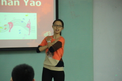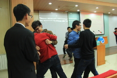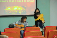 随后,新年联欢晚会正式开始,14级本科生何子麒为大家带来了一首深沉感人的home,博士后Alberto一家人带来了Kisses sweeter than wine和Somebody that I used to know的吉他弹唱,活跃了全场的气氛。14级本科生黎旭翔两度登台,用倾城和苦橙两首动人的音乐和天然的呆萌将晚会的气氛推向高潮,而姚雨含则用一支舞蹈gee让大家看到了天文系女生的风采。晚会中还穿插了三个游戏环节,九宫格猜人、比划猜电影、夹气球三个游戏得到了大家的积极参与。最终,联欢晚会在活跃的氛围中成功落幕,大家依依不舍,合影留恋,共同祝愿北大天文学科在新的一年中更进一步,越来越好!
