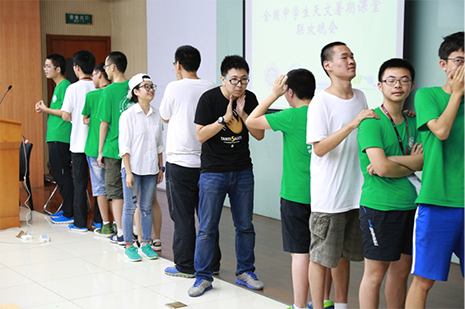 31日晚,在结束了一天的考试后,营员们迎来了本届暑期课堂最后的狂欢——闭营仪式。闭营仪式由北京大学天文学系刘富坤教授主持,来自北京大学科维理所、国家天文台,北京师范大学和北京天文馆的老师们为参与暑期课堂的中学教师和同学们颁发了证书。来自成都七中的李开祥老师做了“我喜欢不确定性”的即兴演讲,表达他对被意外邀请参加暑期课堂的激动、对暑期课堂期间老师和同学们付出的感谢、对能聆听大师讲座和学习前沿天文知识的满足,表示将在今后的教学工作中宣传普及天文知识。在稍后进行的联欢晚会中,多才多艺的营员们用自己的方式抒发了对本届暑期课堂的眷恋。晚会在马门溪龙小组的《我爱北京天文馆》和《国际歌(天文版)》中来到高潮!
