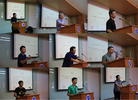 7月28日上午是激动人心的开营仪式。在燕园情、星空日记和北大宣传片之后,仪式正式开始。仪式由北京大学天文系系主任刘富坤教授主持。刘主任首先介绍了参加本次暑期课堂开营仪式的领导和嘉宾:北京大学物理学院院长谢心澄院士,北京大学天文系创系系主任陈建生院士,北京师范大学天文系副系主任吴江华教授,中国科学院国家天文台台长助理、中国科学院大学天文与空间学院常务副院长刘继峰研究员,中国科学院国家天文台人事教育处杜红荣处长、北京天文馆馆长朱进研究员、北京大学科维理天文与天体物理研究所所长何子山教授、副所长吴学兵教授以及十二名来自全国著名中学的特邀参营教师。然后,领导和嘉宾们一一致辞,共同祝愿暑期课堂取得圆满成功,祝愿参加暑期课堂的老师和同学们在暑期课堂期间学习好、生活好。之后,来自杭州学军中学的高级教师杨胜老师、北大天文系优秀博士生2010届夏令营优秀营员陈平同学、青海煌川中学陈箐泽同学分别代表特邀参营教师、往届学员和本届新学员发言,畅谈了他们对往届暑期课堂的感受和对本届暑期课堂期待,以及对暑期课堂的美好祝愿。开营仪式后,参会嘉宾和全体营员及老师拍摄了大合影。“一二三,马门溪!”同学们灿烂的笑容永久定格在了科维理所门前。