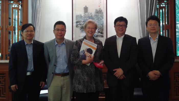 5月20日上午,Sandra M. Faber教授首先参观了北京大学科维理天文与天体物理研究所,随后在临湖轩受到北京大学主管国际合作事务的李岩松副校长的亲切接见,一同出席的还有北京大学科维理天文与天体物理研究所(KIAA)所长何子山,副所长吴学兵以及天文学系系主任刘富坤教授,大家就关于加强加州大学圣克鲁斯分校与北京大学在本科生交流项目上的合作以及相关事宜进行了交流。