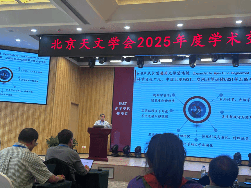8月26日-29日和9月26日-27日:在新疆喀什举办的第十一届海峡两岸天文望远镜及仪器学术研讨会和在北京昌平举办的北京天文学会2025年度学术研交流讨会上,吴学兵教授均做了“青藏高原的大型通用光学望远镜计划”的邀请报告,介绍了成长型通用光学望远镜EAST项目。