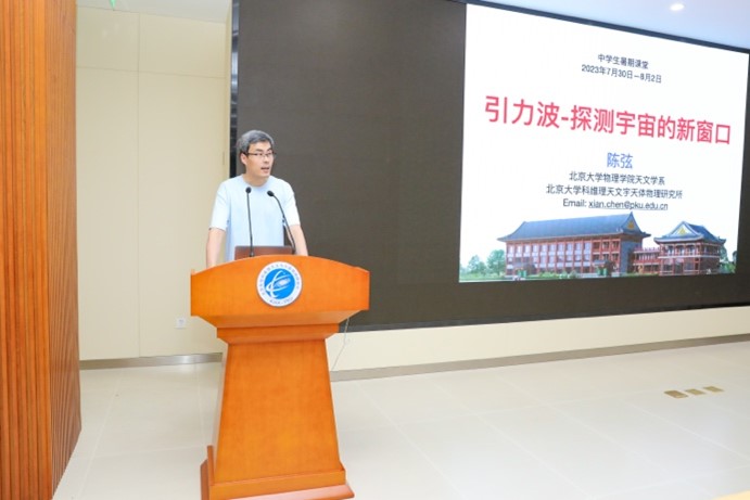 7月31日早晨, 由北京大学大学天文学系和科维理天文与天体物理研究所、北京师范大学天文系、清华大学天文系、中国科学院国家天文台、北京天文馆联合举办的全国中学生天文暑期课堂在科维理所正式开幕,北京大学天文学系副主任张华伟教授主持开幕式。北京大学天文学系系主任吴学兵教授、科维理天文与天体物理研究所所长何子山教授、北京师范大学何香涛教授、清华大学天文系副主任蔡峥副教授、国家天文台教育处处长梁艳春研究员、北京天文馆副馆长齐锐研究员分别代表各联合举办单位欢迎参加暑期课堂的营员们。随后,同学们相继聆听了北京师范大学何香涛教授、北京大学陈弦副教授、清华大学祝伟研究员、北大天文学系创系系主任陈建生院士、国家天文台邓元勇研究员、北京天文馆赵东瑶副研究员的精彩科普报告,覆盖了现代天文学研究的众多方面。在老师们深入浅出的报告和同学们此起彼伏的掌声中,一百多颗天文学的种子已在同学们的心中悄悄萌发。