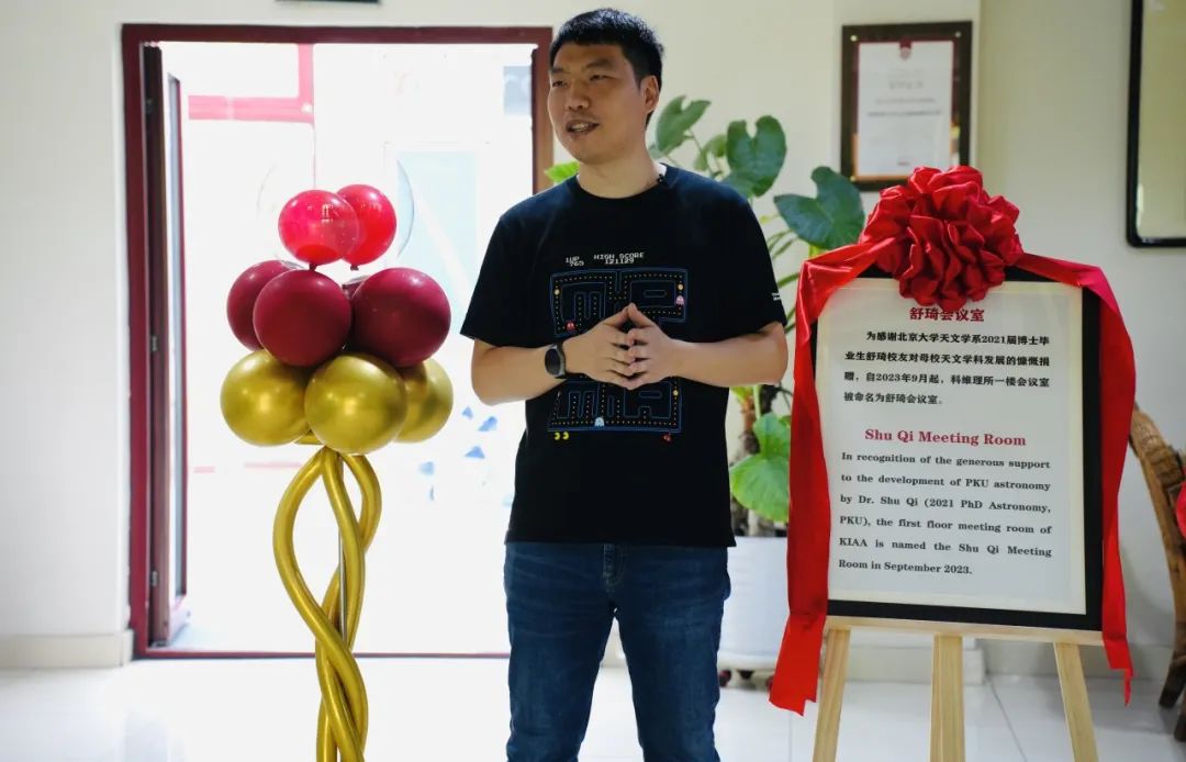 2023年9月11日,应北京大学科维理天文与天体物理研究所之邀, 北京大学物理学院天文学系2021届博士毕业生、量化交易公司(Locoo International LTD.)CEO舒琦校友回到母校参加科维理所舒琦会议室揭牌仪式。