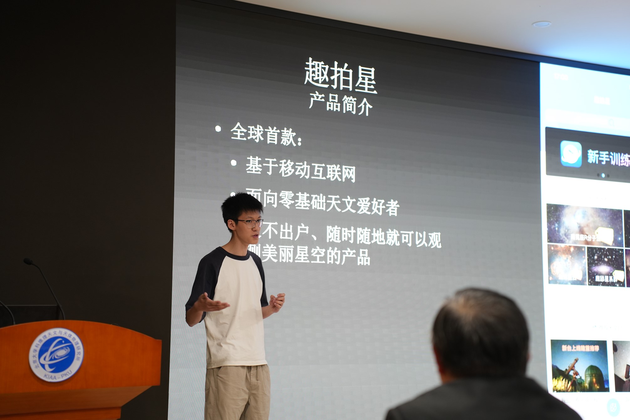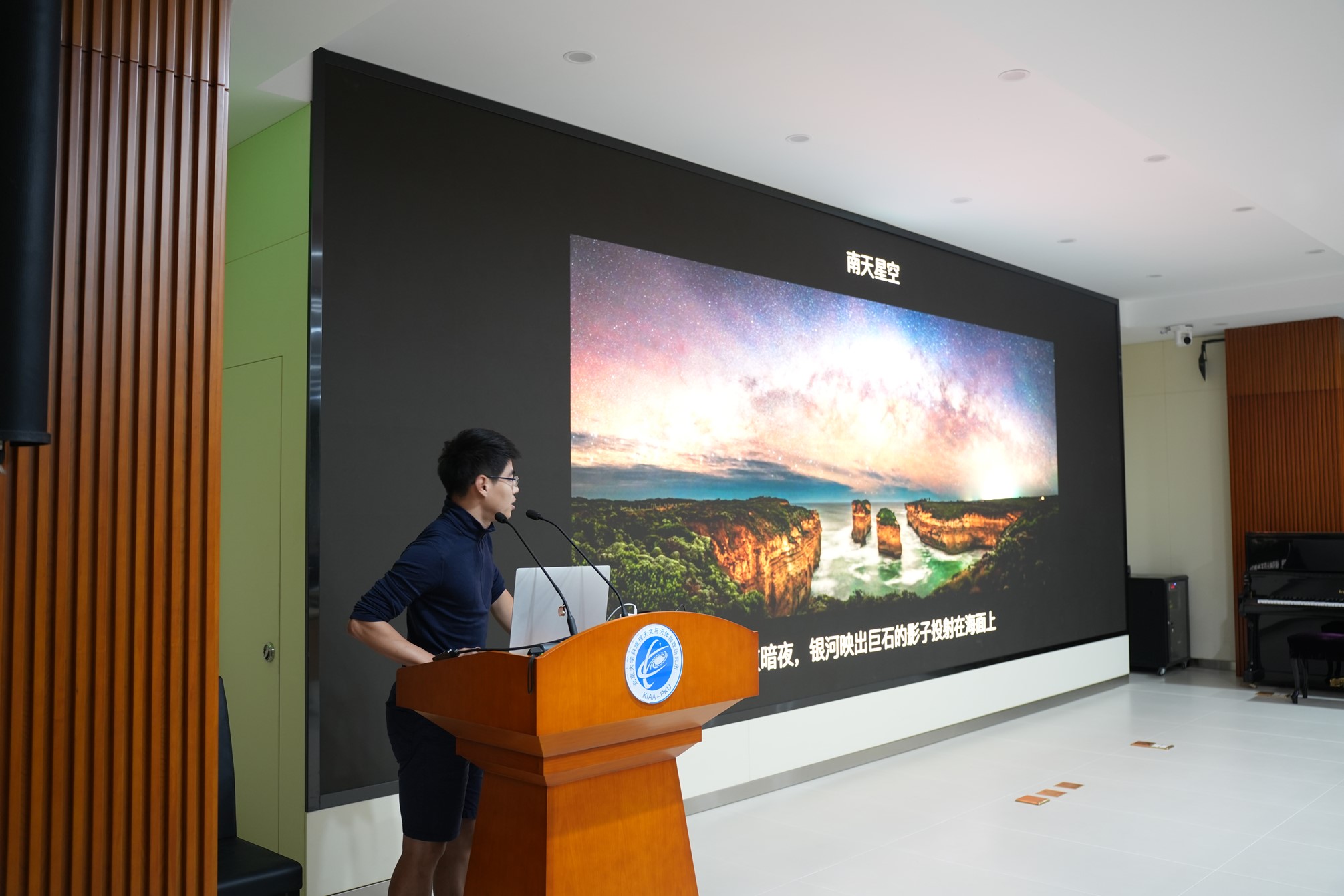 才艺表演后,天文系博士生王凯翔同学用自己拍摄的美轮美奂的星空摄影图片给嘉宾带来一场视觉盛宴, 天文系博士生刘卓楷同学通过自己的研发软件让广大普通星空爱好者通过远程望远镜进行星空摄影的尝试激起嘉宾的好奇。他表示他的团队在多个天文观测点安装了望远镜,未来EAST望远镜也可以包含在内,这又让人对EAST的建成充满期待。