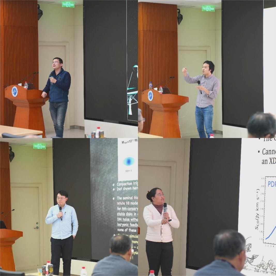 创新群体项目负责人何子山对项目研究计划的执行情况、取得的重要科研成果、人才培养情况、合作交流情况等进行了详细汇报。项目组其他成员和北大天文教师代表也对取得的科研进展进行了介绍。