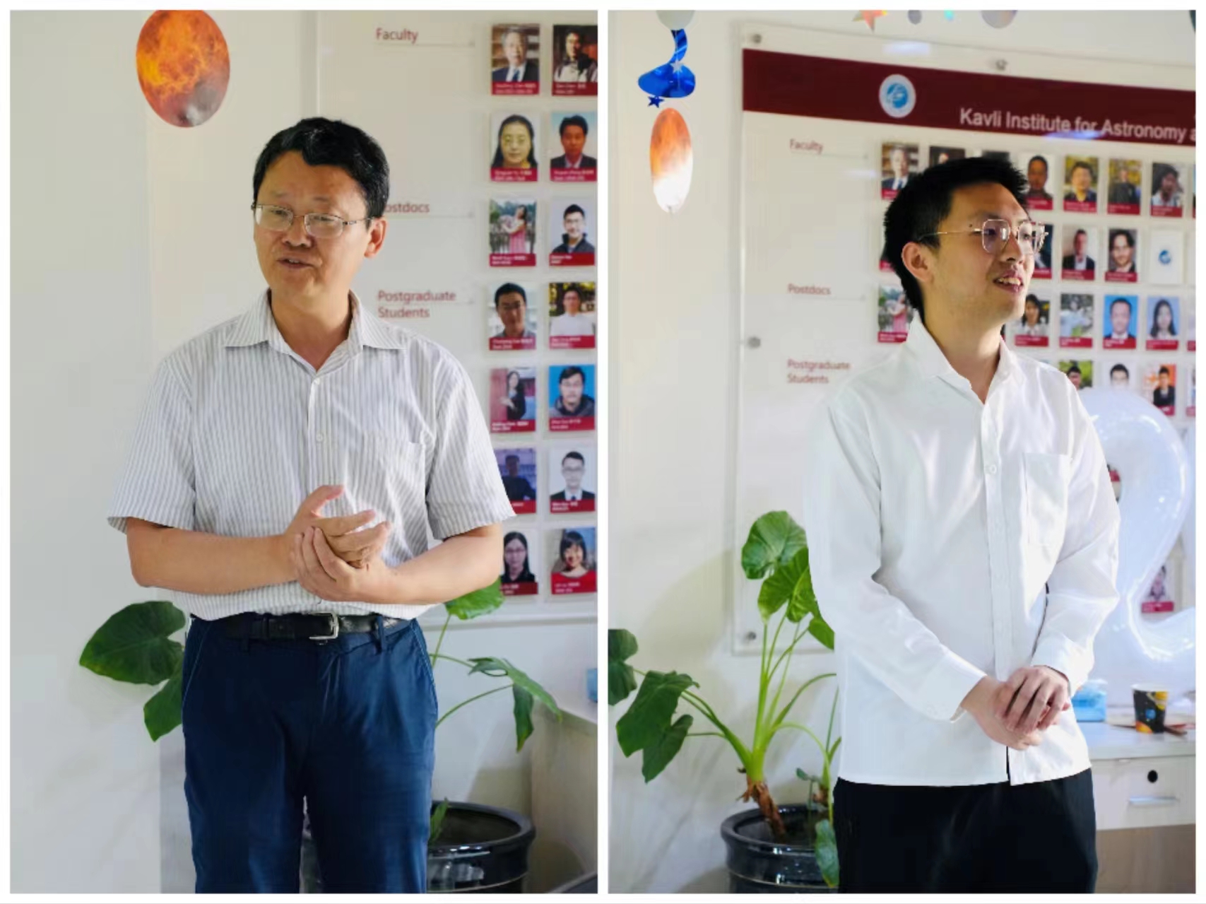 在庆祝会上,科维理所和天文学系的各位领导和老师们纷纷发表热情洋溢的致辞。何子山所长鼓励同学们保持对宇宙万物的好奇心,并不断提高解决问题的能力;吴学兵主任则祝愿大家毕业后继续砥砺前行,勤奋学习,为人类的科学事业贡献自己的力量。2020级本科生班主任刘富坤老师回顾了和同学们的四年相伴生活以及彼此的成长,辅导员唐佳奕也表达了对同学们的祝福和希冀。