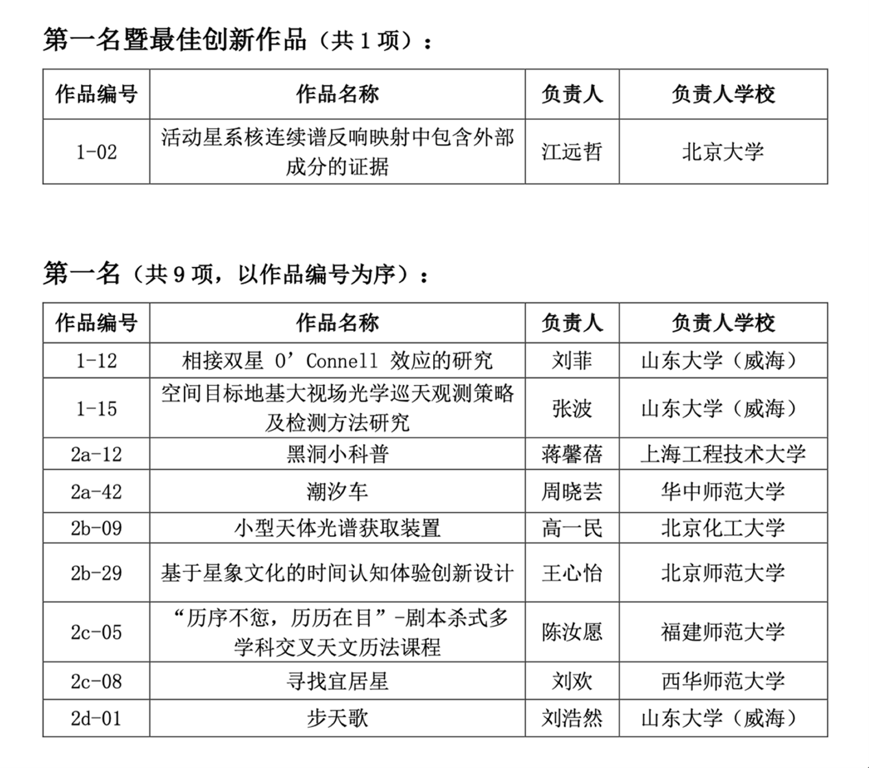 此次大学生天文创新作品征集活动评选出的第一名作品如下: