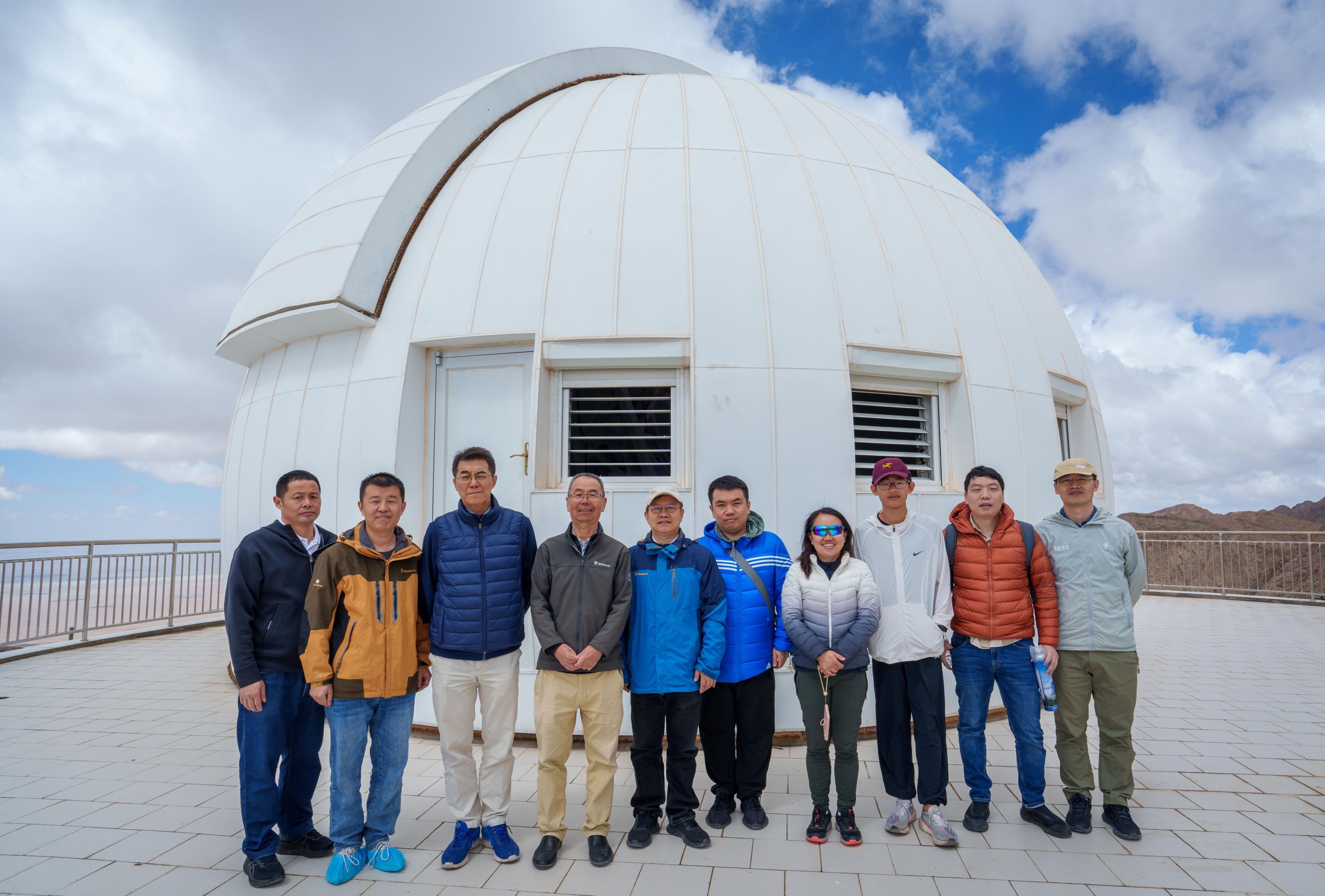 2024年8月1日,由成长型通用光学望远镜EAST筹委会主任、北京大学天文学系主任吴学兵教授带领的考察团从甘肃省敦煌市出发,驾车穿过雄伟的当金山脉,抵达青海省海西蒙古族藏族自治州茫崖市冷湖镇,开始为期3天的冷湖考察之旅。考察团成员主要由关心支持EAST望远镜的部分企业家和北大校友组成,包括软通控股董事长刘天星、软通控股副总裁桂以政、华纳创新CEO胡运兴、纯海菲(上海)科技有限公司执行董事胡红、学而思科学教研负责人吕亚飞、EAST望远镜筹委会成员舒琦、北京大学天文学系博士生朱睿等9人。