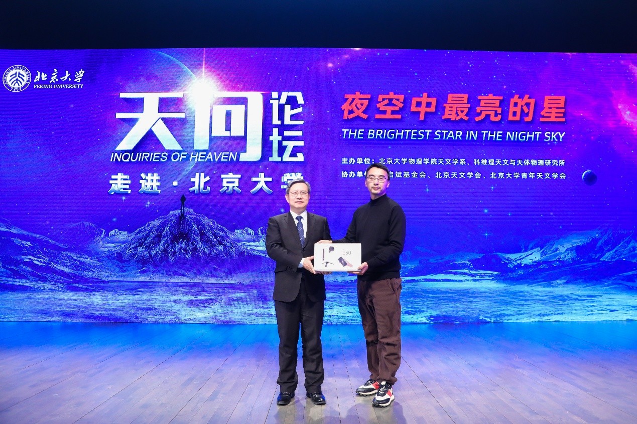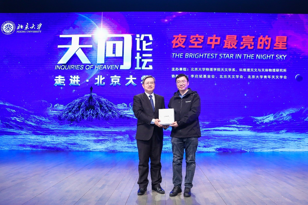 2024年12月9日晚,“天问”论坛“夜空中最亮的星”在北京大学百周年纪念讲堂李莹厅隆重举行。“天问”论坛宗旨是为了推广和普及天文学的基础知识,让更多的年轻人了解天文,鼓励他们加入到天文学的学习和研究中去。同时也向北大天文学系获得李启斌奖助学金的优秀学生们颁发证书。