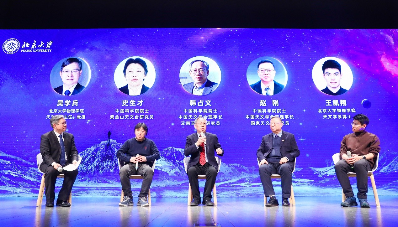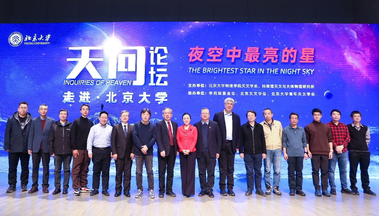 北京大学物理学院天文学系主任吴学兵教授担任本次论坛主持人。出席本次论坛的嘉宾包括中国天文学会理事长、中国科学院云南天文台韩占文院士,中国科学院紫金山天文台史生才院士,中国天文学会前理事长、中国科学院国家天文台赵刚院士,北京大学物理学院院长高原宁院士,北京大学物理学院副院长彭良友教授,李启斌基金会理事长李亦非女士,振旺光电有限公司创始人文佳总经理,光速视觉(北京)科技有限公司创始人邱虹云博士。300多名师生和热爱天文的各界朋友参加了活动。