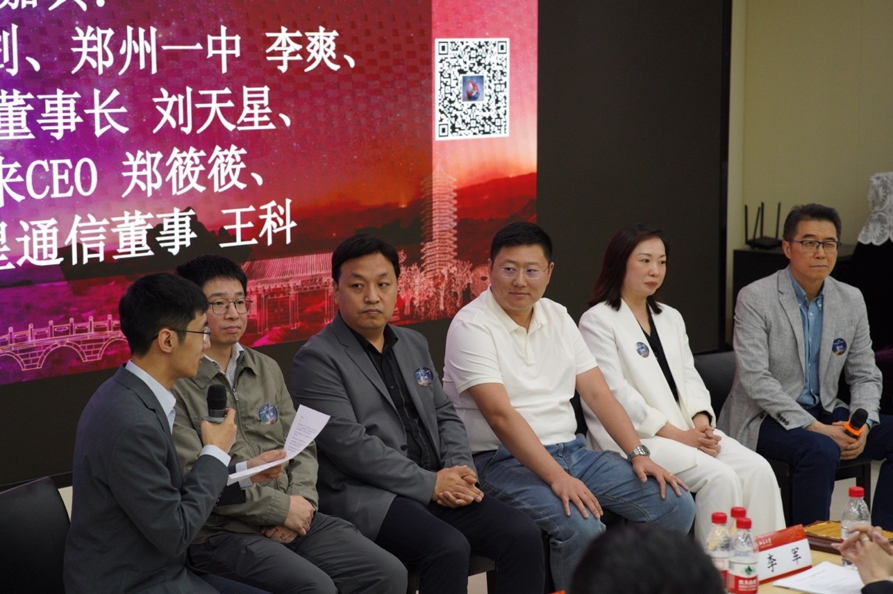 活动最后,举行了天文创新人才培养圆桌论坛。深圳中学胡剑老师、郑州市第一中学李爽老师,以及企业界代表软通控股董事长刘天星博士、宇观未来CEO郑筱筱女士、亚洲卫星通信董事王科先生参加了讨论。胡剑老师分享了深圳中学培养中学生天文学兴趣的经验;李爽老师提出了在中学开展天文科普活动的困难,表达了对大学、中学协同培养天文学人才的期待;三位企业界代表分别介绍了各自公司在天文科普领域的探索与实践,期望产学研结合,共同推动天文事业发展。天文界前辈、南京大学彭秋和教授对三家公司的天文科普成就表达了感动与钦佩,指出天文科普活动能激发青少年对天文的热爱,是培养优秀天文人才的重要基础。