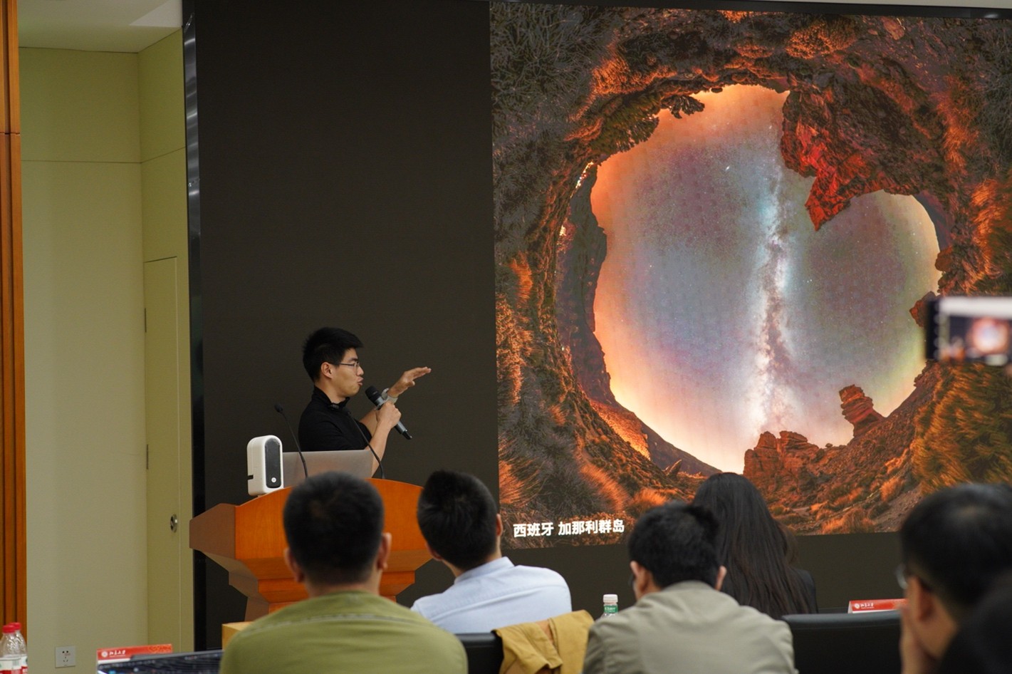 在科普报告环节,国家天文台李楠研究员带来 “大数据天文学时代的数据挖掘” 的精彩报告,以通俗易懂的语言,详细介绍了全民科学和大数据技术在天文学研究中的应用;北大天文系王凯翔博士则以 “追逐宇宙微光” 为题,分享了自己在极限运动和星空拍摄中的独特经历和美丽瞬间,带领在场观众 “遨游”世界各地和浩瀚星空,感受到天文学的无穷魅力。