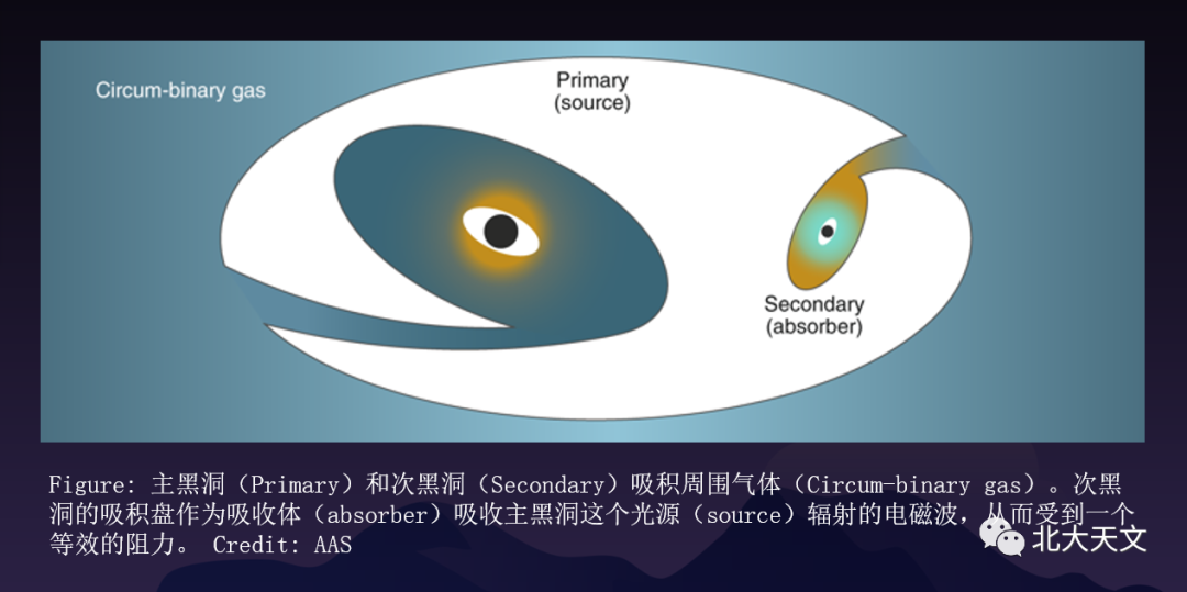 这一想法源自太阳系中黄道光(zodiac light)的形成机制:黄道面内的尘埃通过散射阳光获得等效的摩擦阻力,因此会逐渐落向太阳(Poynting-Robertson效应)。这种机制之所以对双黑洞系统起作用,一方面是因为黑洞本身就可能是明亮的光源。根据先前的理论,双黑洞从合并星系获得气体的同时,也获得了新的燃料,因此可以重新“点燃”类星体。