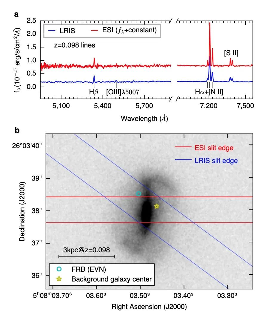 图3:通过Keck望远镜对FRB 20201124A的宿主星系进行的光谱和高分辨率成像观测。