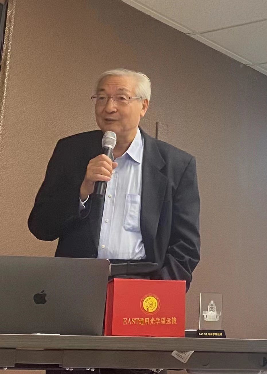 8月31日:在山东威海举行的中国天文学会2023年学术年会上,吴学兵代表项目组在仪器时频分会场做了“8米级成长型通用光学望远镜EAST项目”的报告。