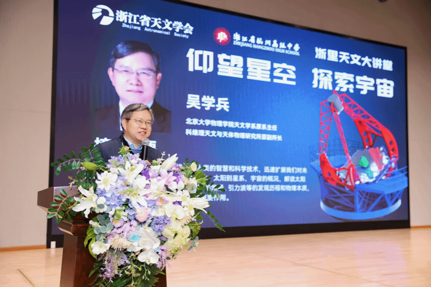 12月6日:在浙江杭州高中临平学校举行的浙里天文大讲堂活动中,吴学兵教授给800名参加2025年浙江省中小学生天文知识竞赛的师生做了“仰望星空,探索宇宙”的科普报告,在报告中介绍了EAST大型光学望远镜。