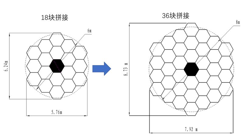 望远镜第一期和第二期主镜拼接示意图(南京天光所提供)