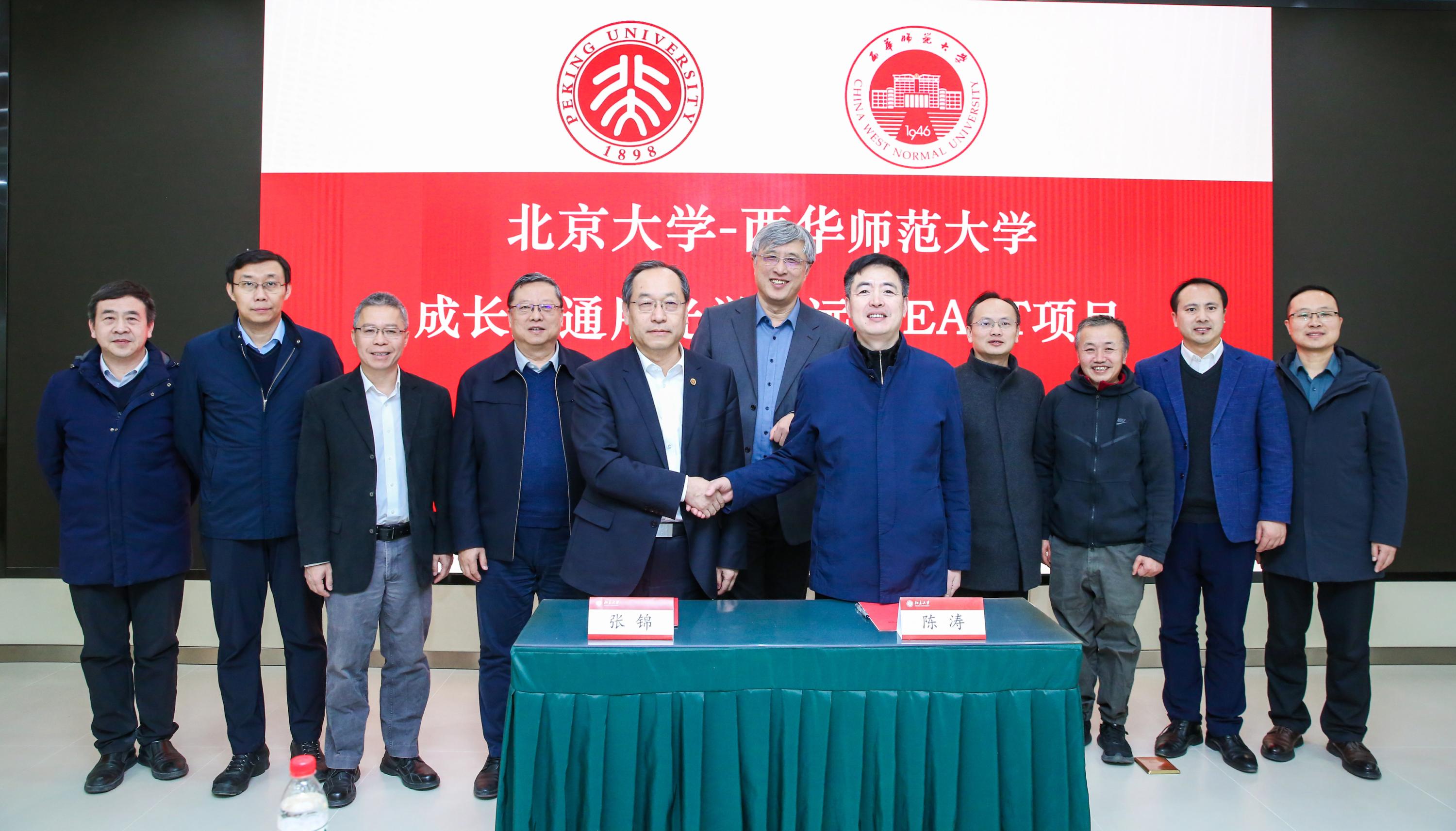 2月29日:北京大学-西华师范大学成长型通用光学望远镜EAST项目合作协议签约仪式暨成长型通用光学望远镜EAST科学目标研讨会在北京大学科维理所举行。西华师范大学党委副书记、校长陈涛,北京大学党委常委、副校长、中国科学院院士张锦,物理学院院长、中国科学院院士高原宁,科维理所所长、美国艺术与科学院院士何子山,中国科学院国家天文台原党委书记、中国科学院院士赵刚与来自北京大学、西华师范大学和全国各兄弟单位的领导、专家共50余人参加。何子山对EAST项目做了简要介绍。张锦指出,北大高度重视基础研究,仪器设备对基础研究的发展至关重要。建设EAST望远镜将对天文学的发展起到非常积极的推动作用。北大与西华师范大学的合作协议的签署,为EAST项目的稳步推进打下了坚实的基础。陈涛简要介绍了西华师范大学的情况。此次西华师大率先提出向EAST项目投入1500万元,体现了西华师大与北大携手建设大国重器的决心,期待接下来双方精诚合作,全力以赴,共同推动中国天文事业的迅速发展。张锦、陈涛在高原宁、赵刚、何子山、胡中文、康涛、王方国、郑国、蒋青权、邓李才等见证下签署《北京大学-西华师范大学成长型通用光学望远镜EAST项目合作协议》。